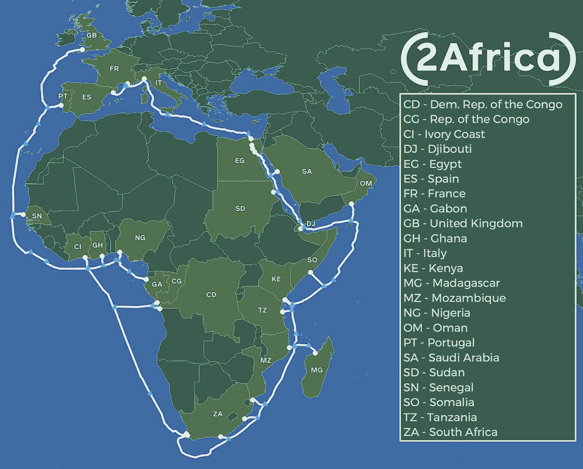 The 2Africa consortium, comprised of China Mobile International, Facebook, MTN GlobalConnect, Orange, stc, Telecom Egypt, Vodafone and WIOCC, announced today the addition of a new segment - the 2Africa PEARLS branch - extending to the Arabian Gulf, India, and Pakistan. This extension will bring the total length of the 2Africa cable system to over 45,000 kilometers, making it the longest subsea cable system ever deployed.