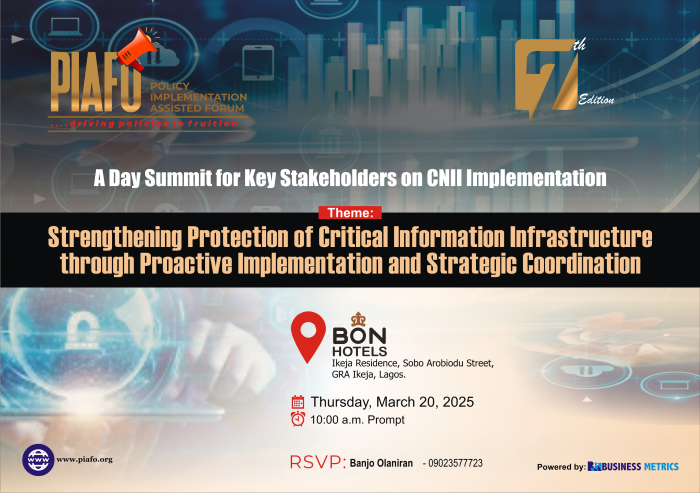 Stakeholders are set to convene at the seventh edition of the Policy Implementation Assisted Forum (PIAFo) to discuss pragmatic strategies for protecting critical information infrastructure.