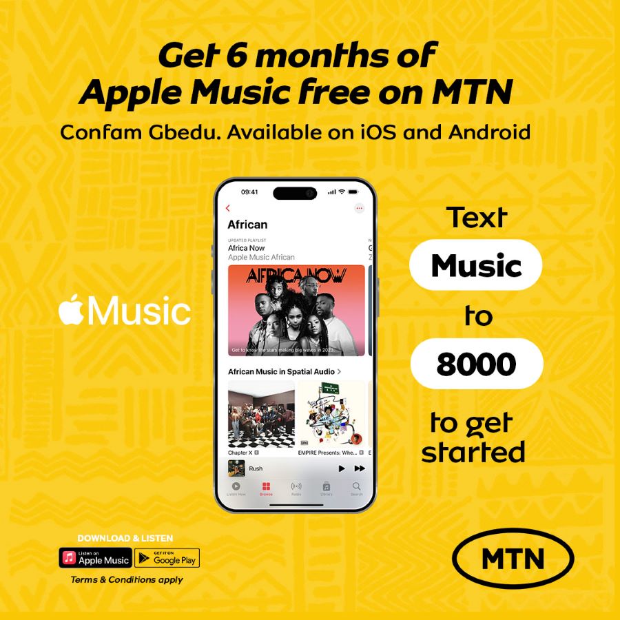 The partnership will ensure subscribers enjoy six months free trial on Apple Music, courtesy of MTN Nigeria. After the free trial, they can continue to stream or download music on the platform for N1,000 per month. This offer is open to both iOS and Android devices.